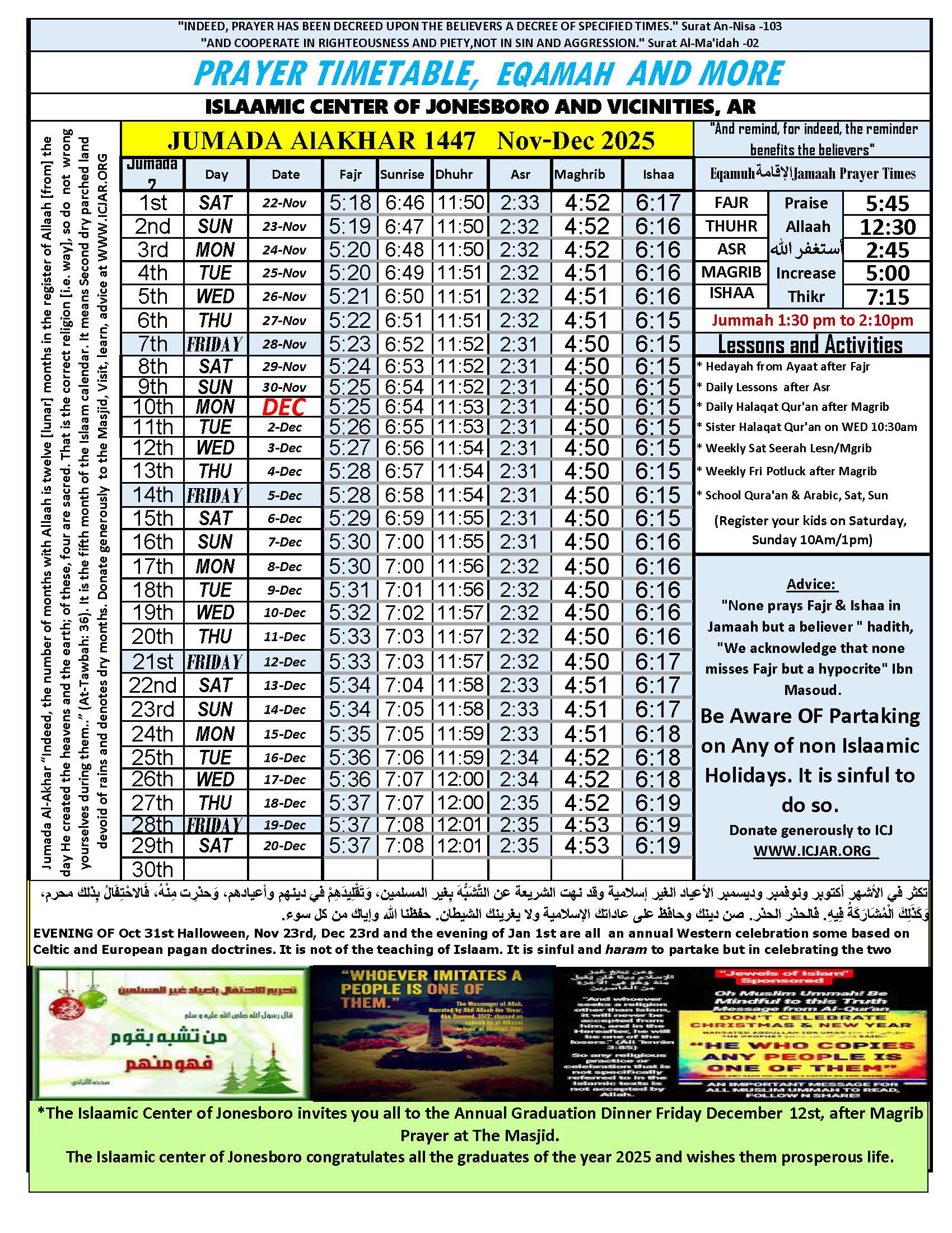1447 Jumada AlAwwal Prayer schedule