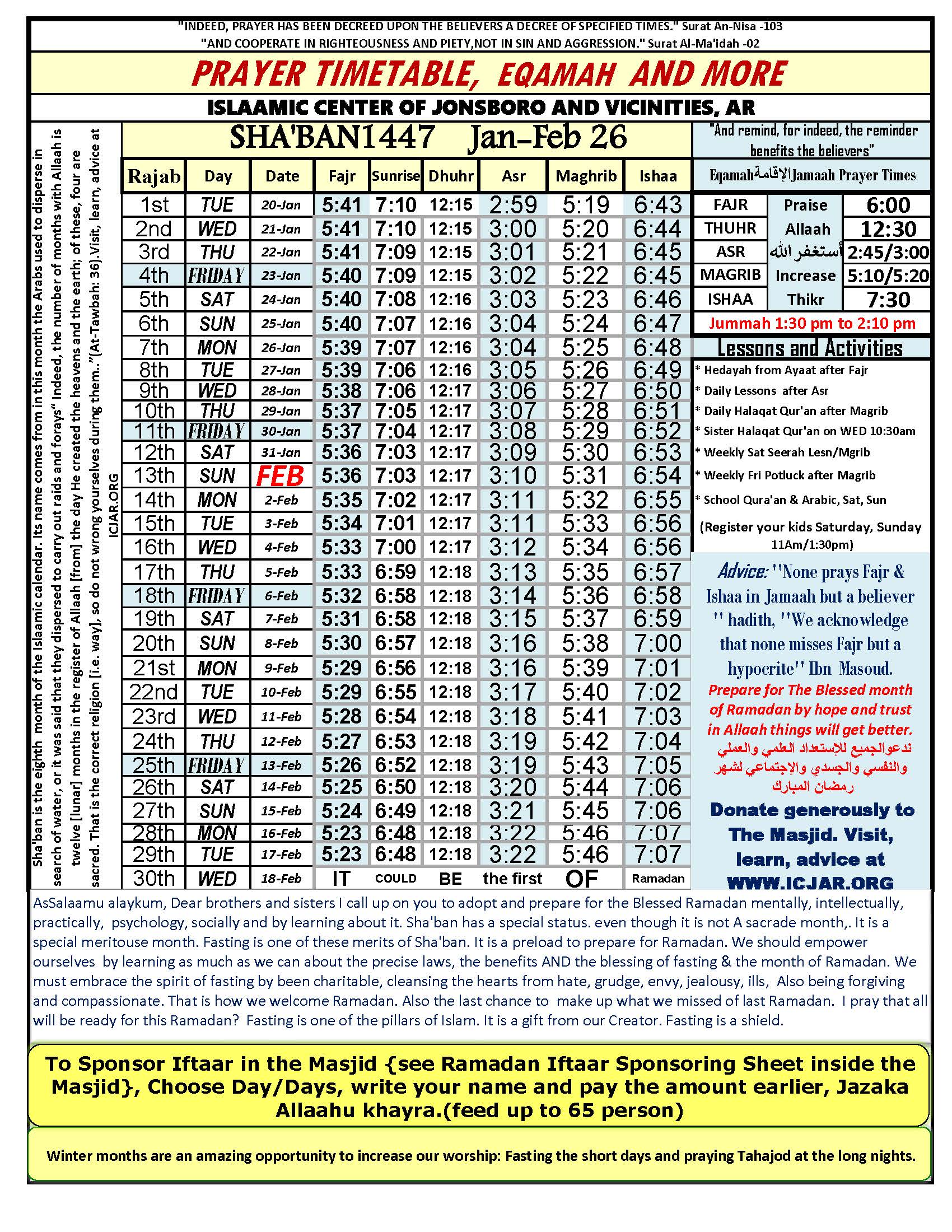 New 1447 Sha’ban Prayer sch