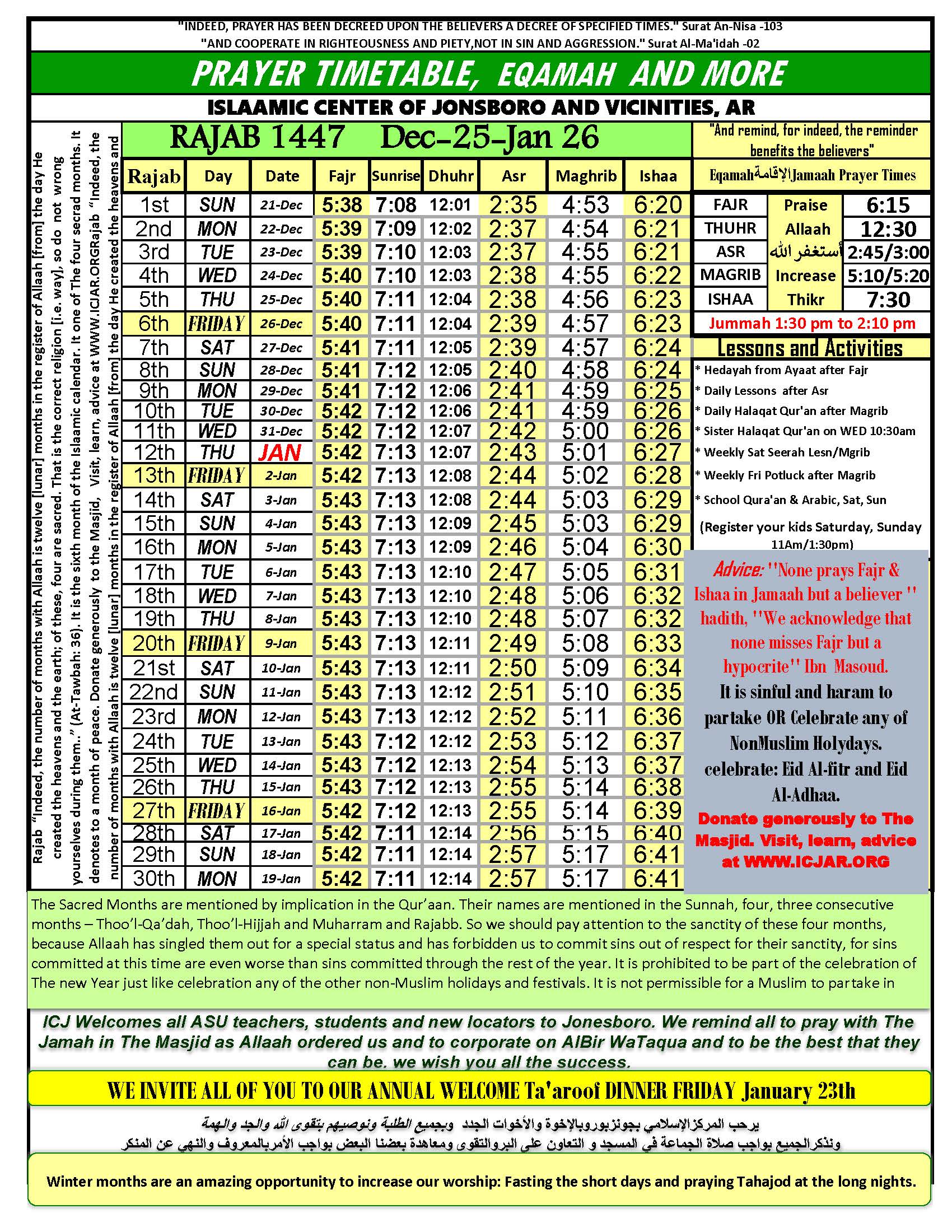 Rajab 1447 Prayer schedule