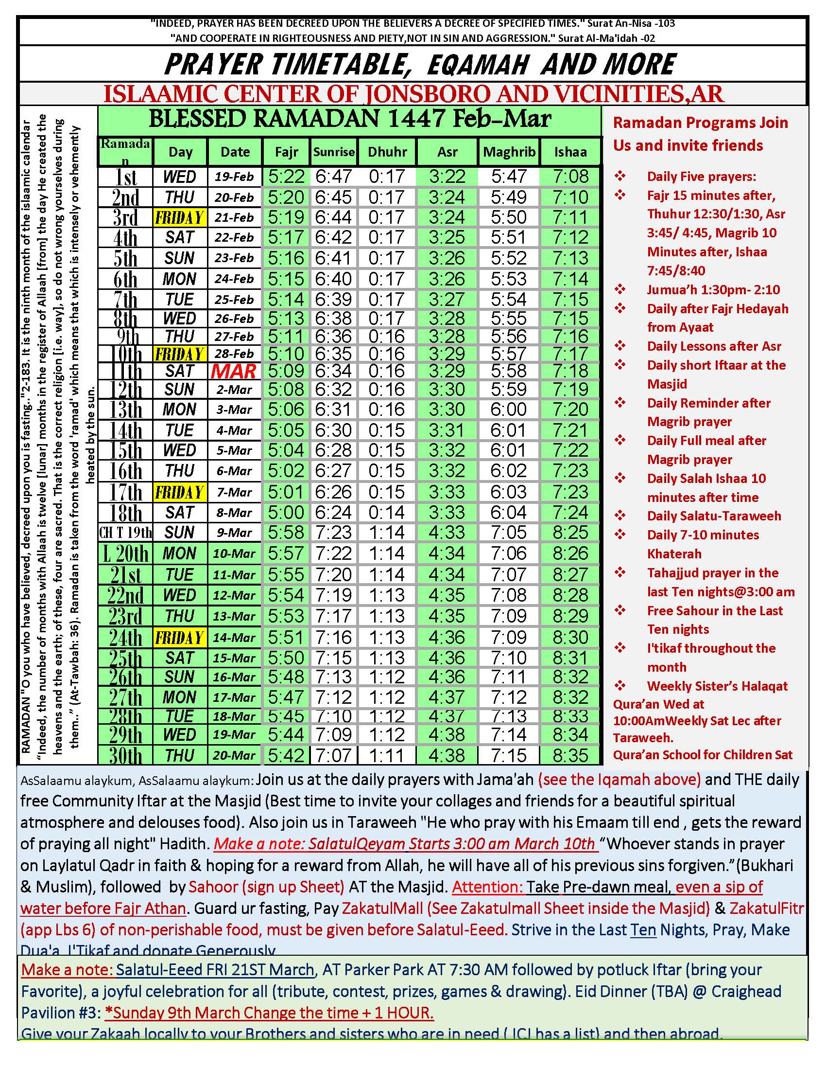 New 1447 Sha’ban Prayer sch
