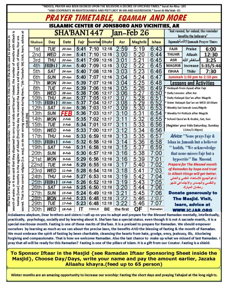New 1447 Sha’ban Prayer sch